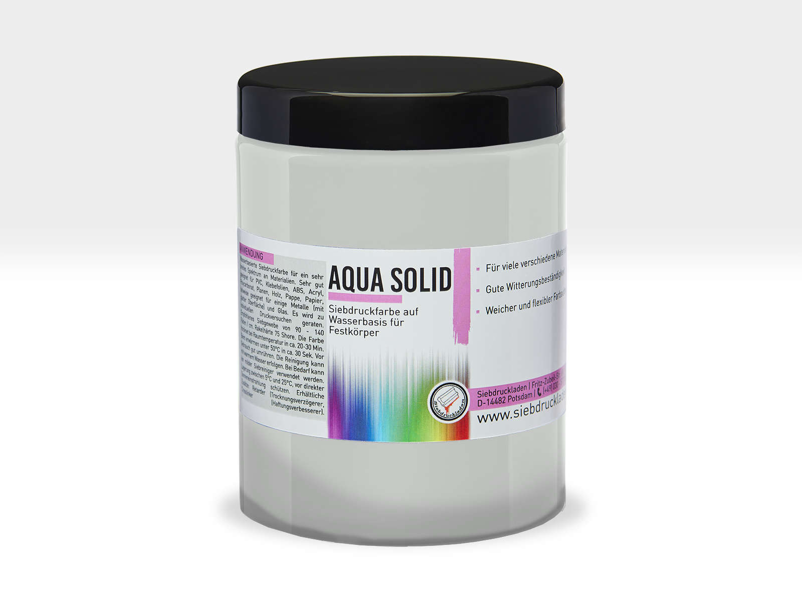 AQUA SOLID - Wasserbasierte Siebdruckfarbe für den Druck auf PVC, ABS, Acryl, Polycarbonat, Planen, Holz, Papier