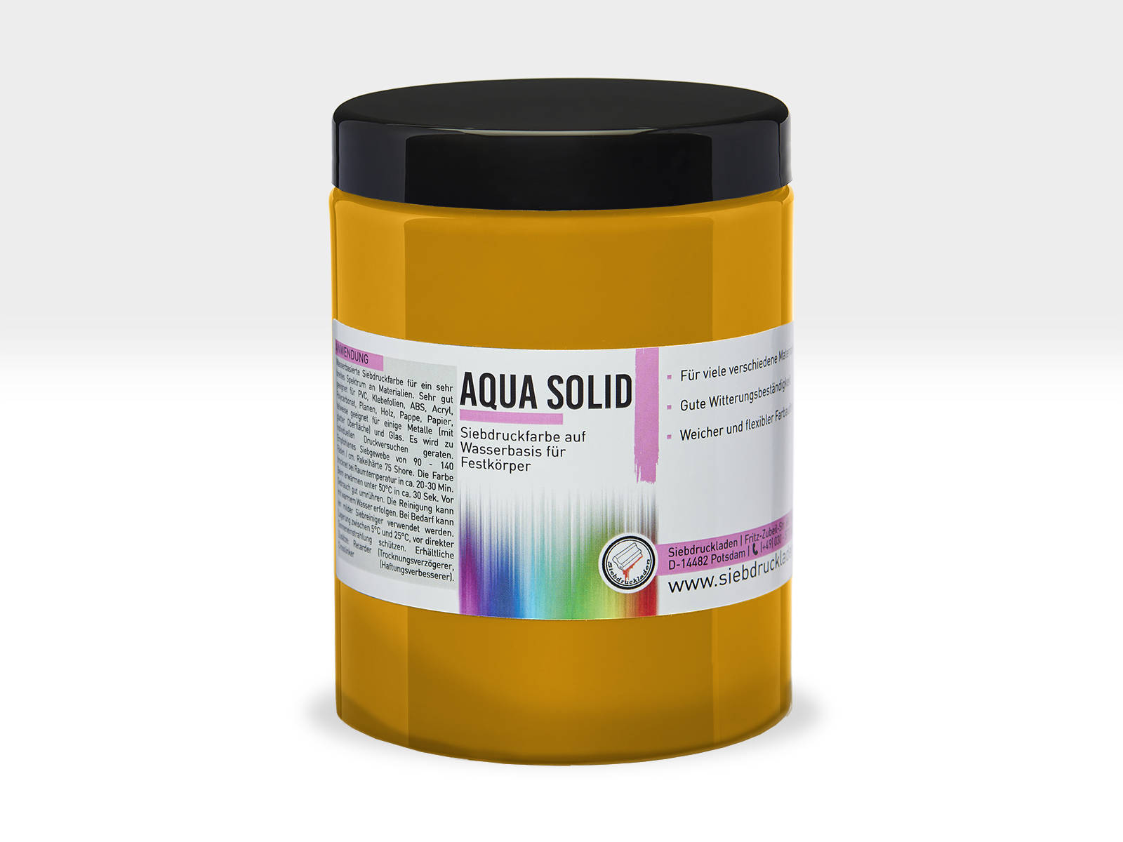 AQUA SOLID - Wasserbasierte Siebdruckfarbe für den Druck auf PVC, ABS, Acryl, Polycarbonat, Planen, Holz, Papier